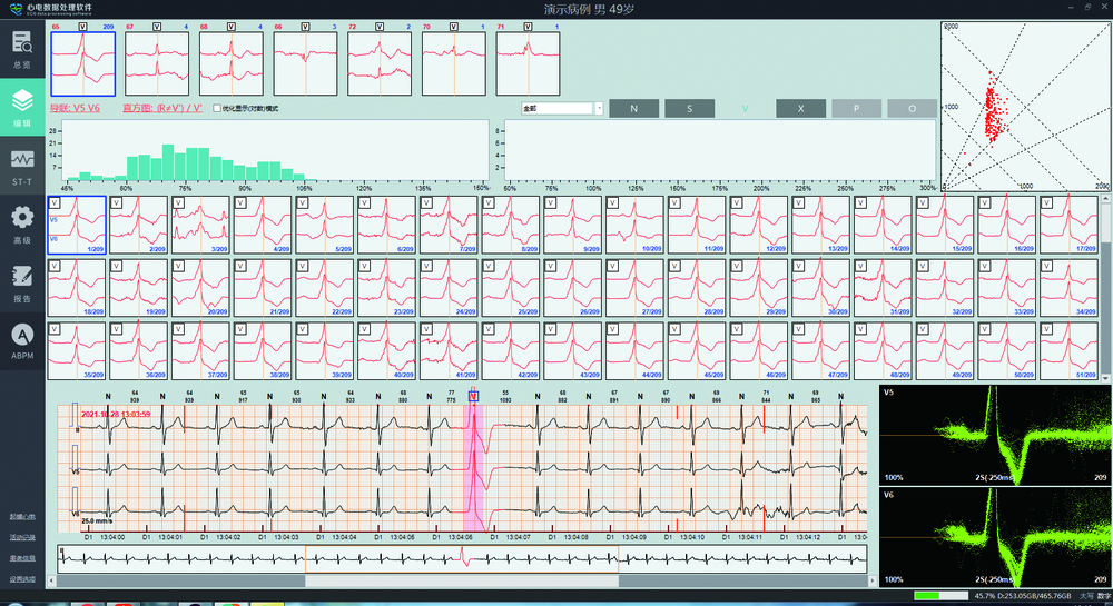 以散点图为中心构建直方图、时间散点图、心电图、叠加图,多画面同屏互动,是以散点图编辑为核心的全新编辑方式
